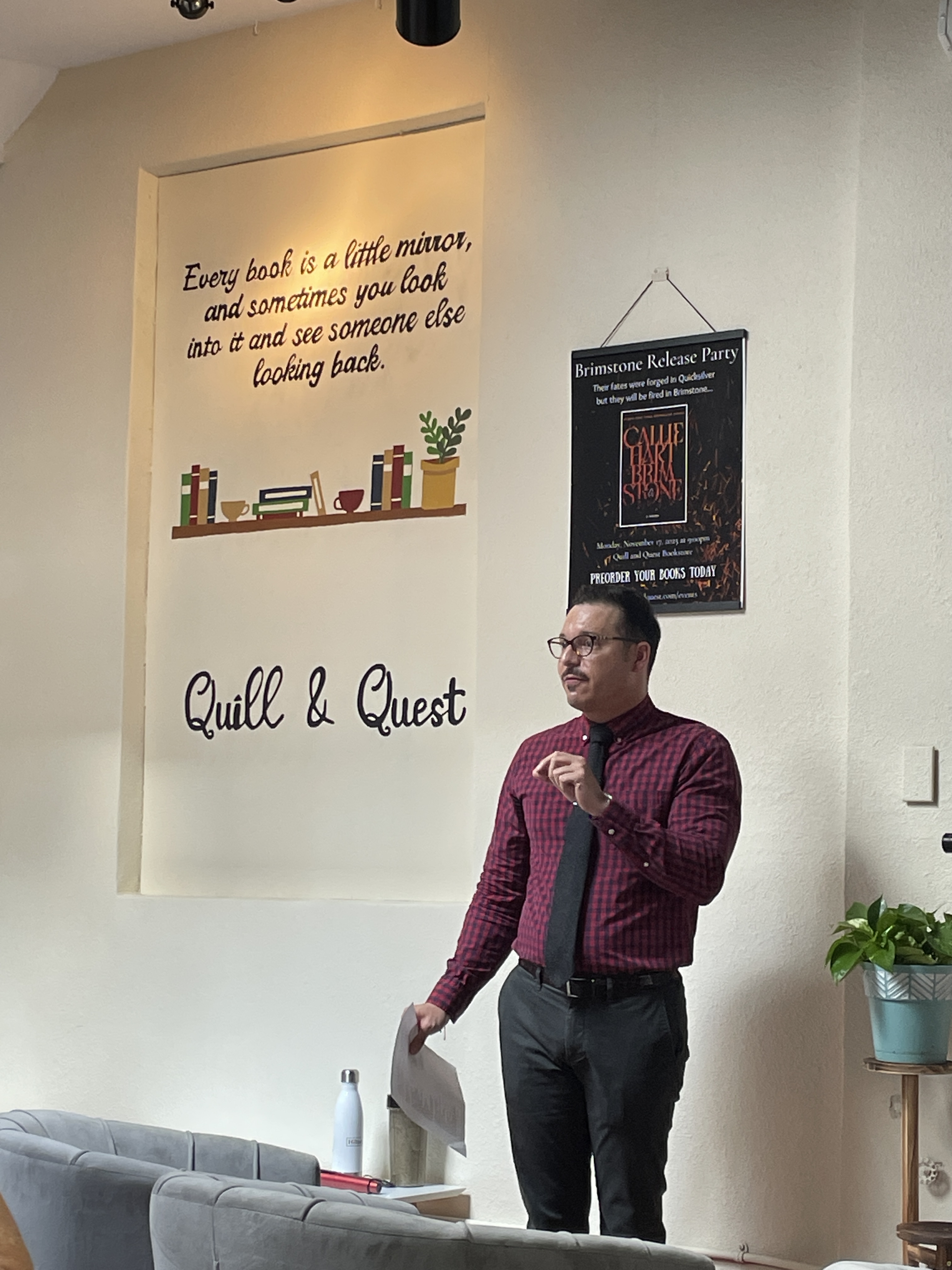 The series is free and open to the public. Attendees are encouraged to purchase beverages and snacks at Quill& Quest’s bakery, and to purchase books at the store as well as a way to support an independent bookstore and express appreciation for their willingness to host the series.