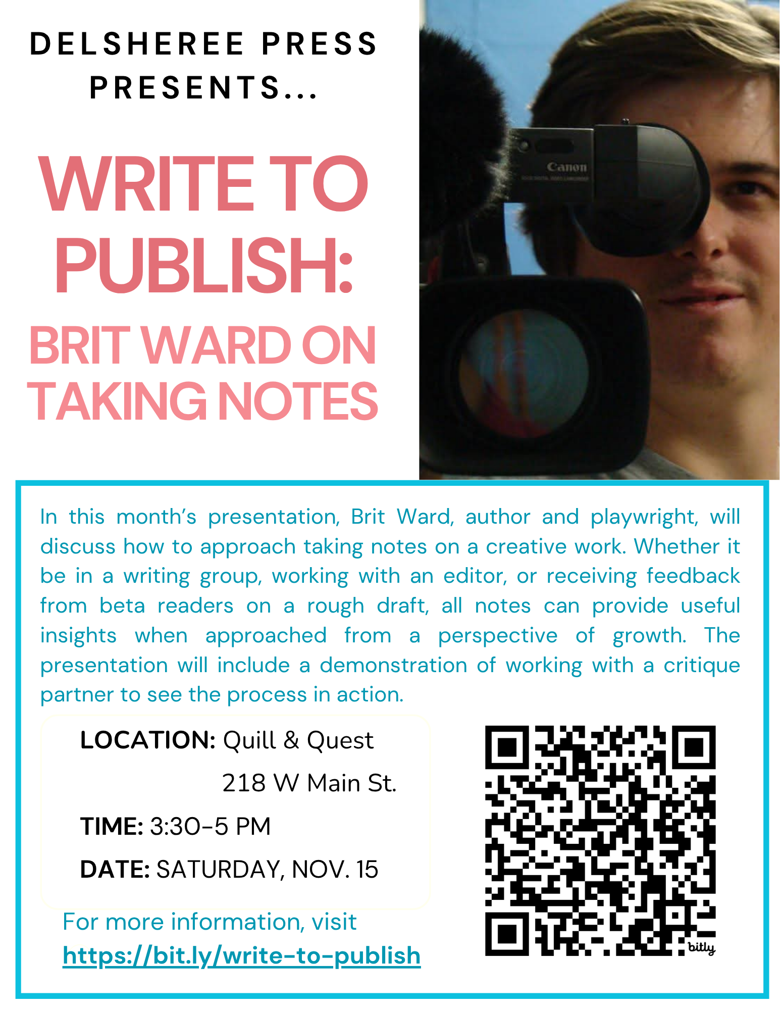 DelSheree Press is based in Farmington, a small-ish town that often lacks resources for the many writers in this area. The series invites guest authors to speak on a topic he or she excels at or is an expert on.